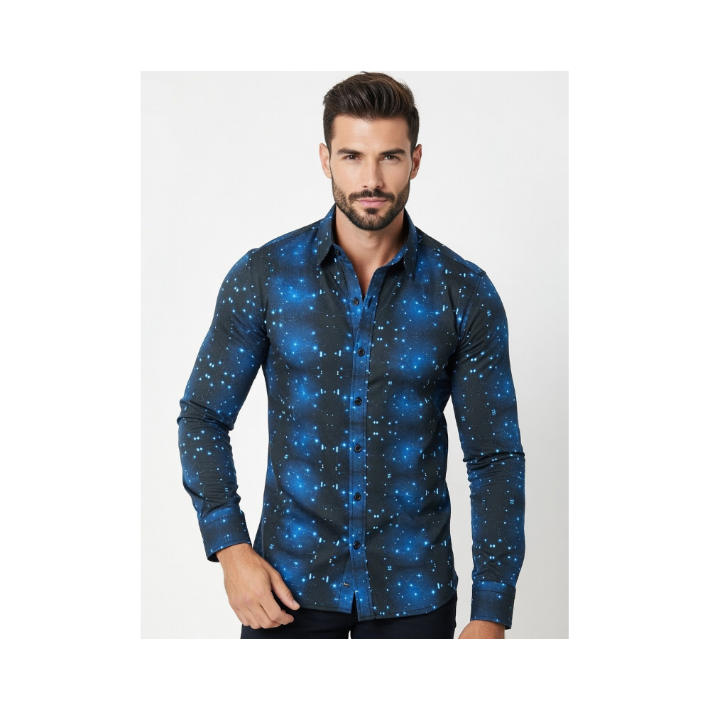 CAMISA DE HOMBRE MANGA LARGA ESTAMPADA, UN CORTE ENTALLADO SLIM CON PINZAS EN LA ESPALDA,MATERIAL SUAVE Y ELÁSTICO DE ALGODÓN/ELASTÁN PARA UN AJUSTE CÓMODO.