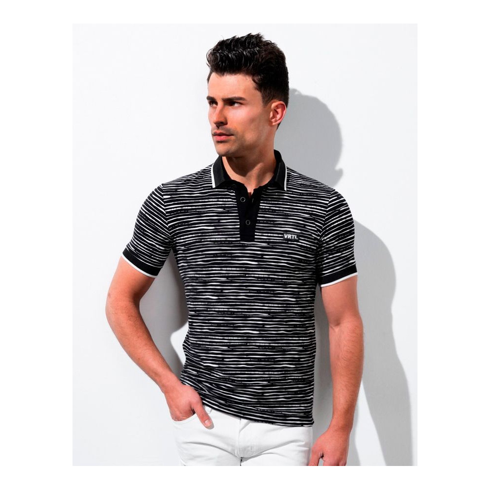 POLO NEGRO CON LINEAS BLANCAS,MANGA CORTA,ALGODON/ELASTAN.