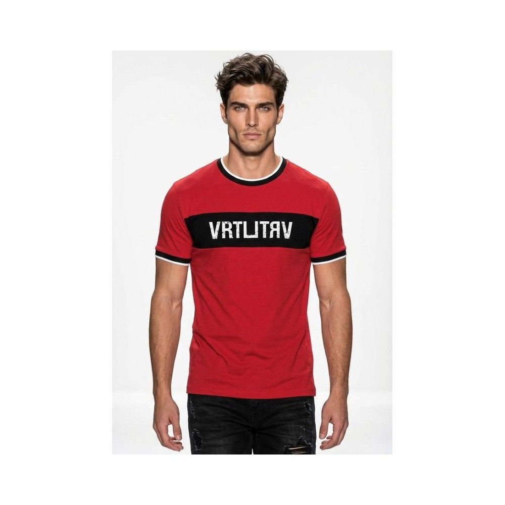 CAMISETA HOMBRE ROJA CON NEGRO,MANGA CORTA,VISCOSA/ELASTÁN QUE LE APORTA UNA SUAVIDAD,AJUSTE Y COMODIDAD.PRODUCTO DE CALIDAD,DISEÑADO Y FABRICADO EN ESPAÑA.