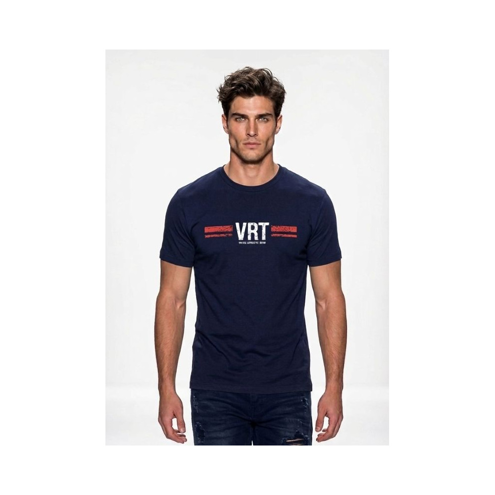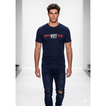 CAMISETA HOMBRE AZUL MARINO CON ESTAMPACIO0N EN BLANCO Y ROJO DE VISCOSA/ELASTÁN QUE LE APORTA UNA SUAVIDAD,AJUSTE Y COMODIDAD.PRODUCTO DE CALIDAD,DISEÑADO Y FABRICADO EN ESPAÑA.