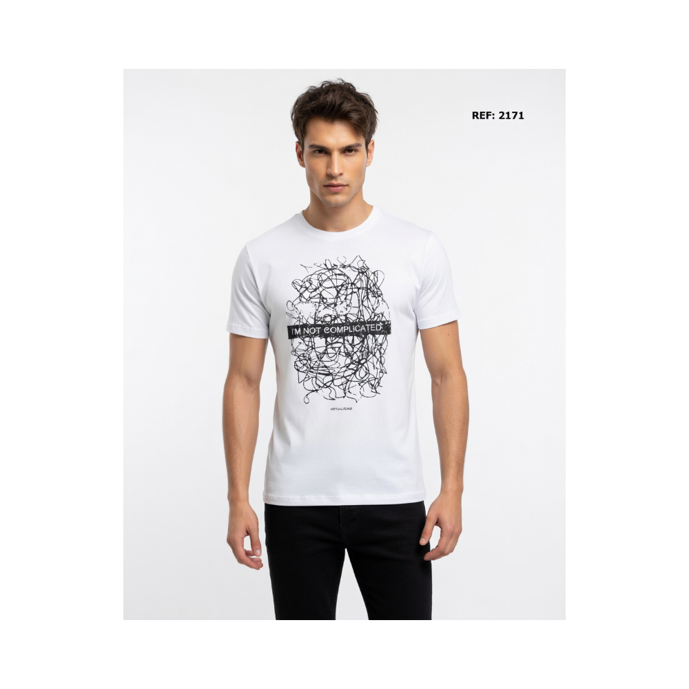 CAMISETA HOMBRE BEIG DE MANGA CORTA CON GRAFICO EN COLOR NEGRO,TEJIDO DE ALGODON 100% ORGANICO QUE LE APORTA UNA SUAVIDAD Y COMODIDAD.PRODUCTO DISEÑADO Y FABRICADO EN ESPAÑA.